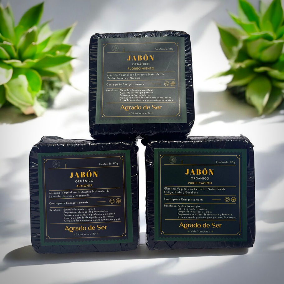 Kit 3 Jabones en Glicerina Vegetal con extracto de plantas para Ritual y Baños Energético: 110gr cada uno.